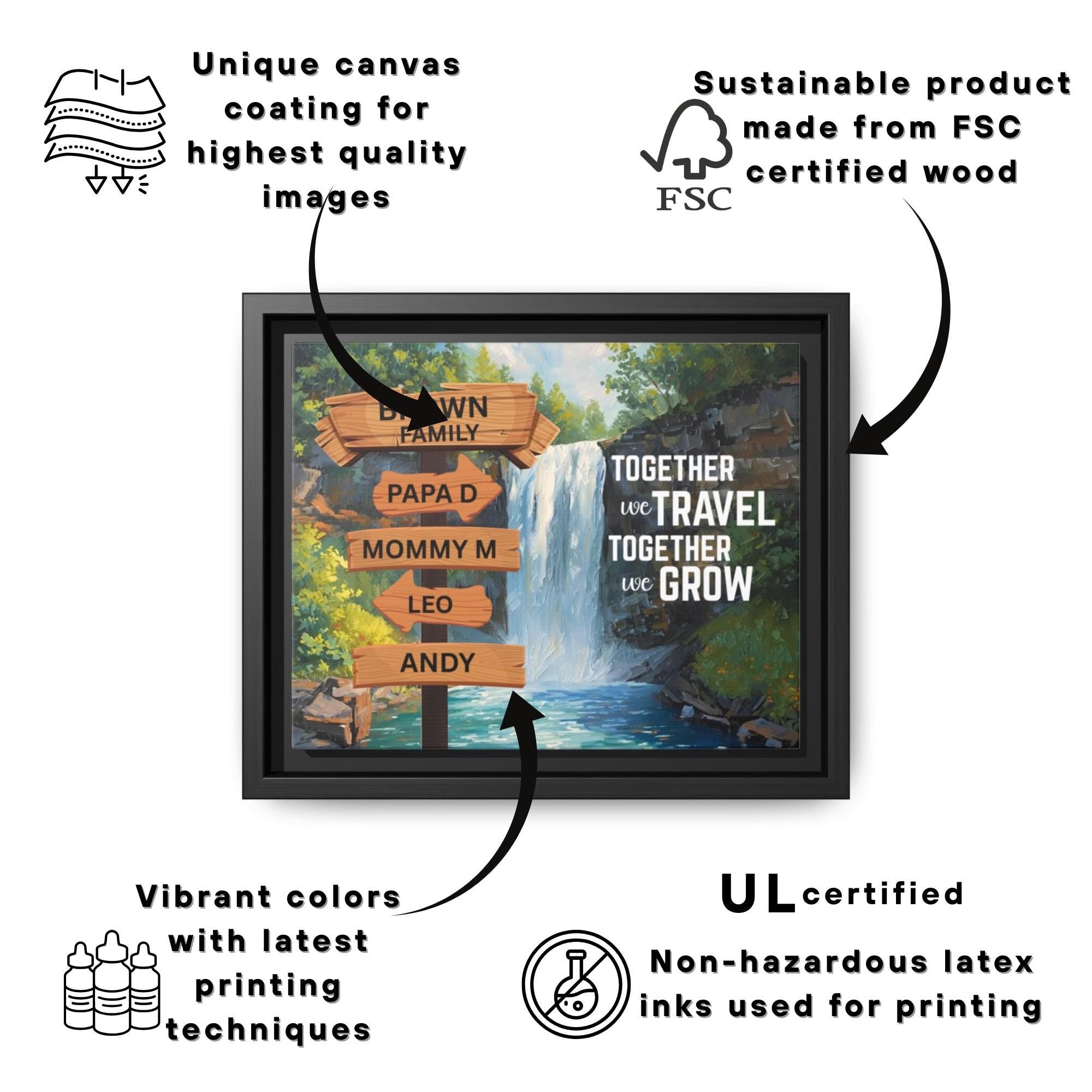 This custom family name sign canvas captures the spirit of adventure with a vintage street sign design set against a scenic nature backdrop. Perfect for adding a personalized touch to any room, this nature adventure art piece delivers motivational quote decor that inspires and uplifts families who cherish travel and outdoor experiences. Measuring from 10x8 inches up to 30x24 inches, this framed canvas offers versatile sizing options to fit entryways, living rooms, cabins, or family areas with ease. Crafted with eco friendly canvas and a rustic wood frame, it blends durability with sustainable style for modern home decoration that lasts.