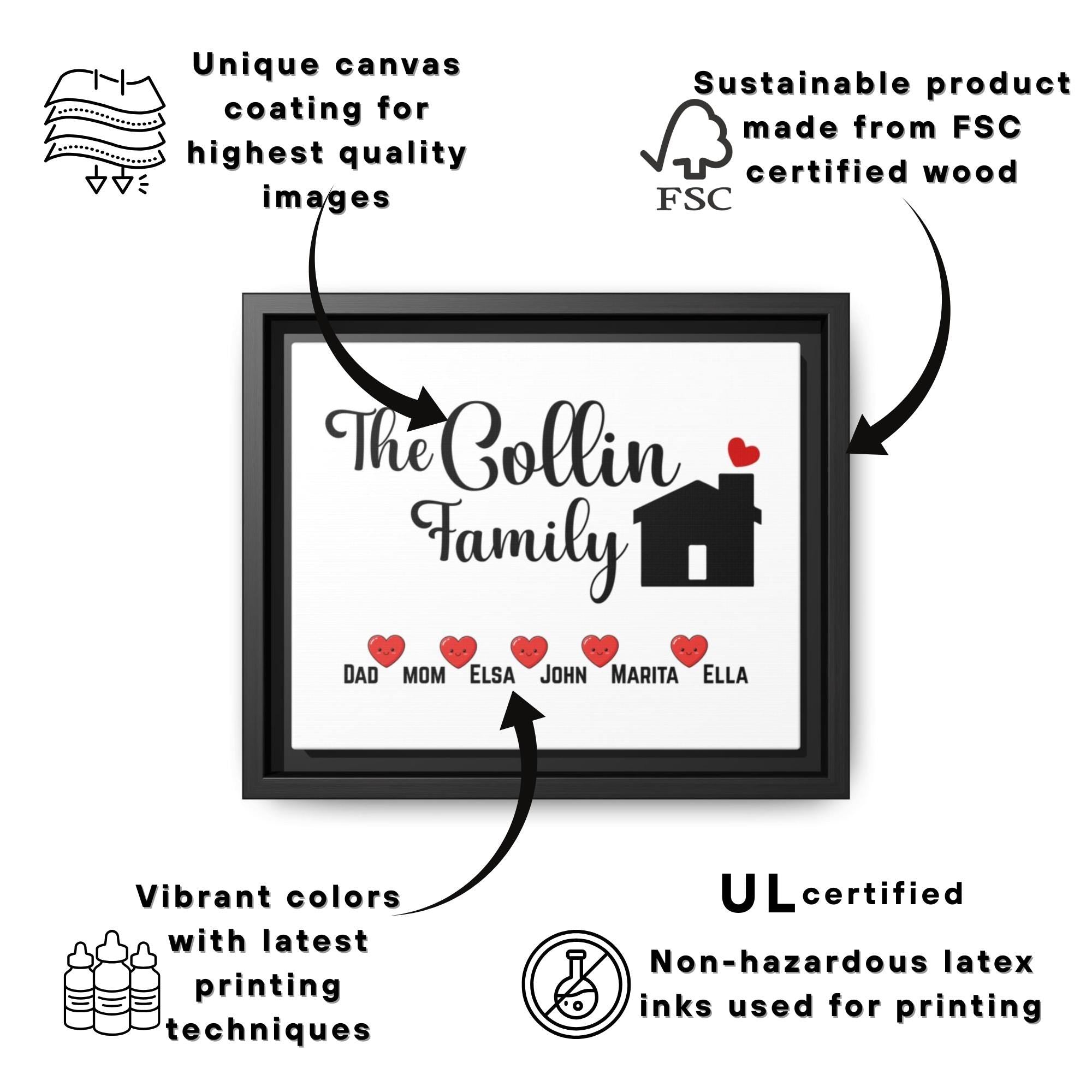 Modern Custom Framed Canvas Sign Wall Art featuring a personalized family name design for stylish home decor. This custom name wall art adds a unique and elegant touch to any modern interior. Perfect as a custom gift for him or her, combining simplicity and sophistication. Enhance your space with this personalized family name sign, a trendy and timeless wall art piece.