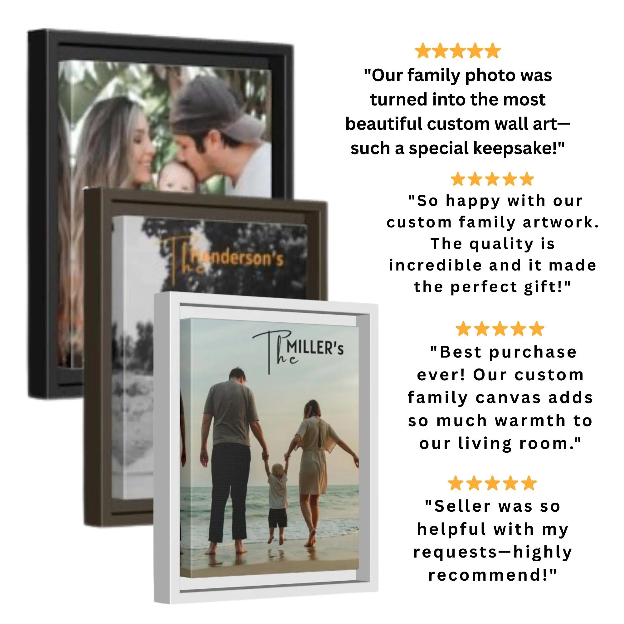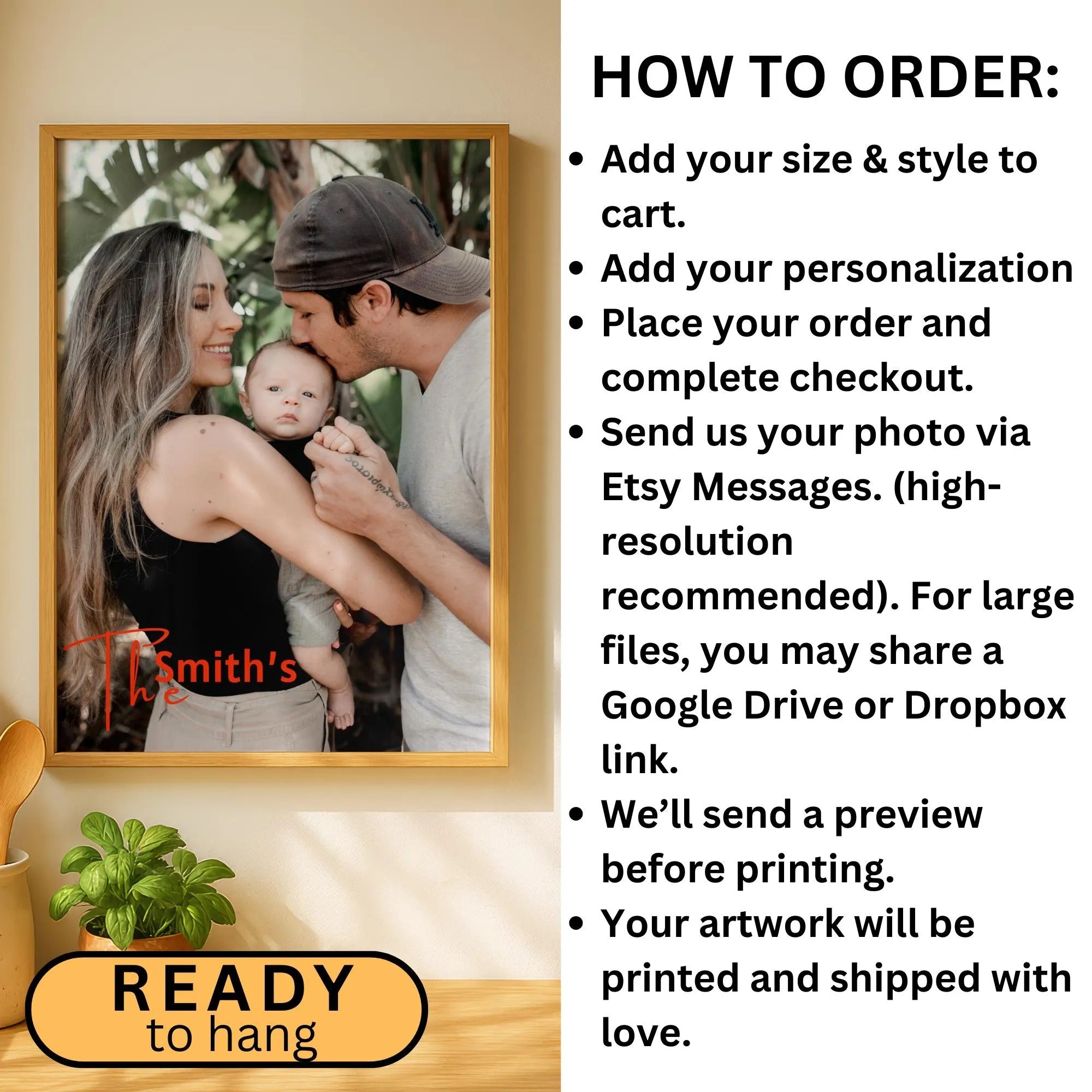 Celebrate your memories with this made-to-order fall decor custom family photo wall art, crafted into a stunning personalized canvas print. Each design is carefully created to transform your photo into a unique keepsake that brings warmth and character to any space. Perfect as an anniversary, birthday, or housewarming gift, this custom artwork adds a cozy seasonal touch to your home. We style your text (family name, date, or special message) to fit your photo beautifully, adjusting font, placement, and color for the best look. Turn your favorite family photo into timeless fall wall decor that’s both meaningful and one-of-a-kind.